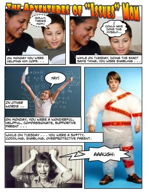 Here’s a comic book excerpt of our “How to Drive Yourself Crazy in One Easy Lesson” post from the other day! Stay tuned for more installments of “The Adventures of ‘Issues’ Mom”!!!